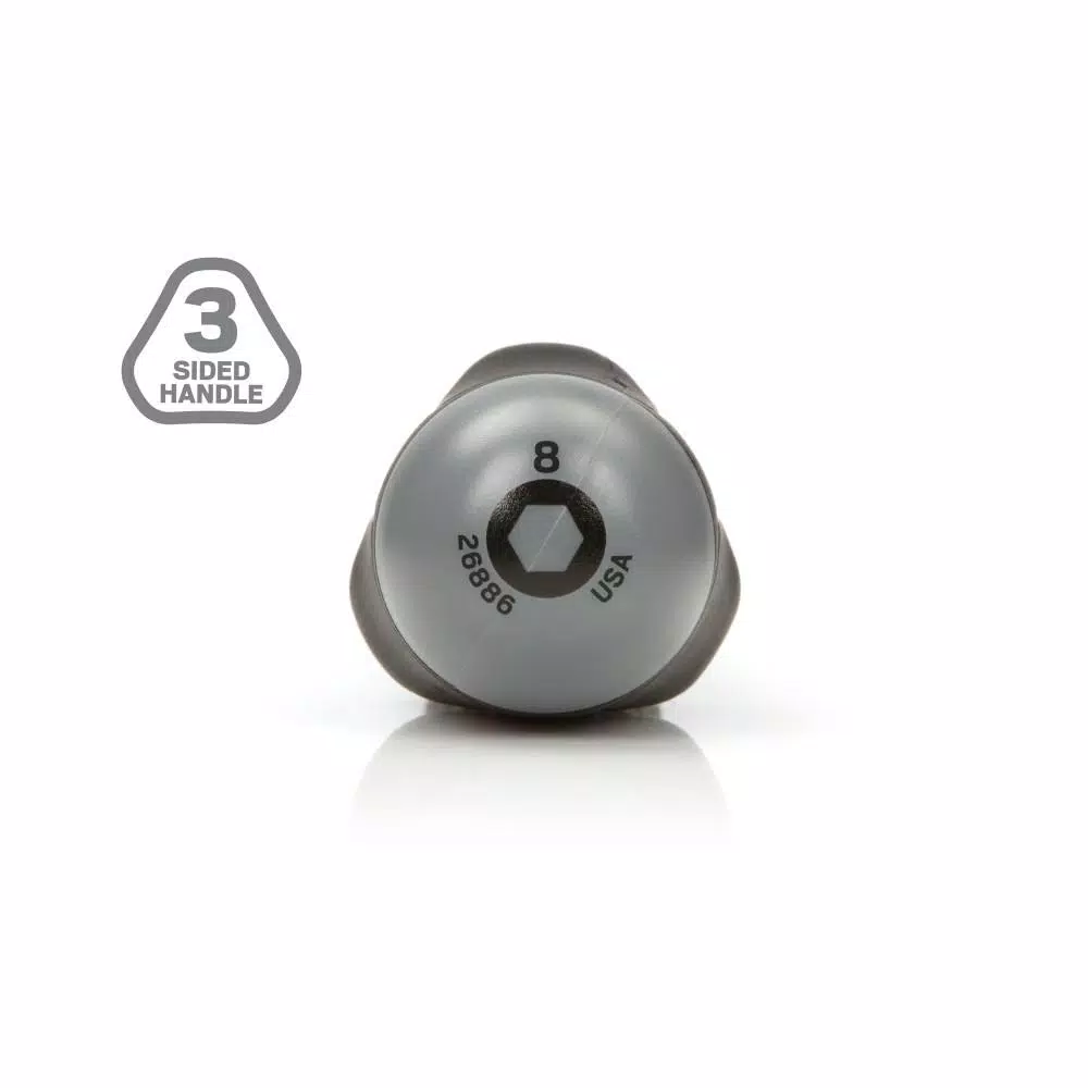 One-of-a-Kind Handle: The patented handle design offers a versatile combination of torque and speed. Its three-sided geometry engages the structure of your hand, not just friction against your skin, to turn the driver. This means you can comfortably apply much more force, even when your hand is greasy or tired. For long, finely threaded fasteners common in electrical, installation, and assembly work, round top and bottom sections allow your fingertips to spin the driver quickly and smoothly. 6-Point Socket: Made to exacting tolerances, the 6-point socket snugly fits hex-shaped fasteners so it wonβt slip off while you work or round off corners under stress. A recess inside the shaft accommodates the excess threaded tail of longer bolts or studs. Protective Finish: Rather than a layer of plating, the steel surface of the blades is directly treated with a hot black oxide finishβthe same process used to protect firearms. Since this finish canβt flake off, it wonβt damage your work or diminish the precise fit of the socket over time.